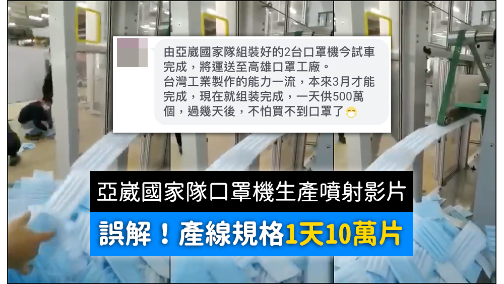 【易誤解】亞崴國家隊口罩機生產噴射影片?並非500萬個口罩